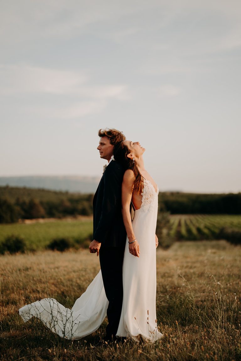 Après la cérémonie, nous sommes partis pour une séance couple dans les champs. La lumière dorée de Provence révélait leur complicité. Ainsi, leurs photos prenaient une dimension à la fois romantique et intemporelle. La vue sur la Sainte-Baume ajoutait encore plus de caractère à leurs images.